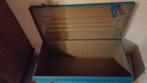 Blauw metalen kist. Afmetingen b x 90 cm, h x 41 cm, d x 46 cm. Enkel af te halen. Geen courierdienst.
