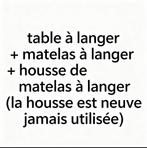 Je vends une table à langer en hêtre avec un matelas à langer et une housse pour le matelas à langer. La housse est neuve et jamai