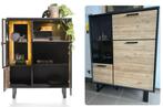 Henders & hazel highboard avalon combinatie van zwart metalen frame met licht eikenlook fronten en glazen deur. Kenmerken: - ingebouwde led-verlichting - glazen deur links - veel opbergruimte - so