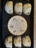6 koffietasjes + onderzetbordjes met gouden vlinders op nog nieuw in de doos!
