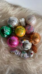 13 oude glazen kerstballen , vintage figuurtjes, deukbal, enz. Worden zorgvuldig verpakt afhalen in eeklo of verzenden
