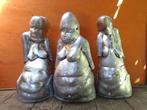 Vreemdsoortige beelden, gemaakt door mijn man. Dienden ooit voor een toneel-decor! Zilverkleurig, basis van klei (beelden zijn hol, dus makkelijk verplaatsbaar) hoogte: 72 cm. Wie heeft een plekje in