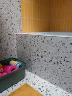 Hippe terrazzo keramische tegelsteen met vrolijke kleuren! Wij kochten ze in juli 2025 en deze worden nog steeds verkocht bij impermo vandaag (zet www. Ervoor): impermo.be/nl/vloer/keramische-vloer-en