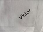 Zakdoeken in witte kleur met licht blinkende strook. Afmetingen 30x30 cm er staat victor op gedrukt ik heb 39 stuks