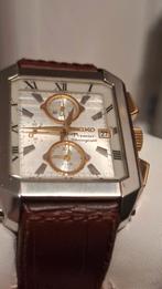 Montre seiko rectangulaire chronograph quartz alarme date verre minéral crystal diamètre 37 mm bracelet en cuir a clipser en très bonne état .