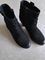 élégantes bottines en cuir suédé noir : pointure 37 fr ou 4 uk. Talon conique : hauteur 5,5 cm doublure intérieure : microfibre. Très confortables. En super et parfait état. Les frais de port dépenden
