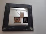 Spiegel afmetingen 88 x 88 x 3 cm. Houten frame dikte 3 cm bekleed met metaal, vermoedelijk zink. Metaalreactie met omgevingslucht zichtbaar. Gewicht=zwaar. Contant betalen bij ophalen.