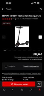 Je vends ma trottinette électrique segway-ninebot f2e, achetée chez mediamarkt au prix de 560,84 €. Elle a très peu roulé avec un kilométrage total de 352,4 km. La trottinette roule à une vitesse