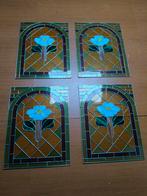 Vier glas in lood panelen in goede staat. De afmetingen zijn 45cm x 60cm