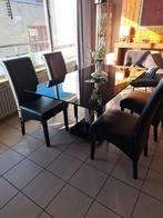 Table de salle à manger 160x90 cm sur pied chromé et verre teinté noir et table de salon identique a retirer a flemalle