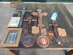 16 stuks kruisbeelden en plaatjes. De 2 grote kruisen hebben een totale lengte van 85cm en 75 cm. 40€ voor het totale lot. Ze
