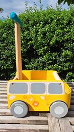 Plantoys houten wagentje. Om mee te lopen, maar ook om spulletjes in te verzamelen. Schattig wagentje. Vooraan lichte gebruikschad