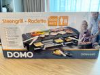 Raclette en steengril slechts 2 keer gebruikt. - 8 Pannetjes waarvan 4 gebruikt - exclusief houten spatels - gepolijste natuurstee
