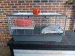 Groot hamsterhok te koop met toebehoren, zie foto's. Met klein en groot rad van 33 cm. De plateaus kunnen eenvoudig verwijderd worden, dus ook geschikt voor cavia's of konijnen. Afmetingen; 10