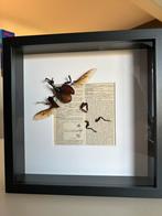 Mooie decoratieve set met verschillende opgezette insecten, waaronder een neushoornkever (aangekocht voor meer dan €100) en een draco volans (vliegend draakje) onder glazen stolp. Alles bevindt z