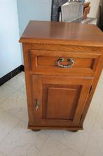 2 identieke volle eiken kastjes , kleur = middeneik . Kast met lade en legplank , goed onderhouden gebruikte staat . Hoogte 82 , breedte 46 , diepte 33 . Prijs per stuk 50 euro , voor beide kastjes 85