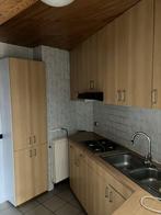 Bovenkasten keuken, kolomkast en linkse onderkast (zonder werkblad). Opm. De onderkast onder de wasbak is niet inbegrepen ( is nog
