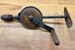 2 perceuses à main anciennes en métal et en bois. L'un est en parfait état et d'origine, l'autre est dépourvu de poignée et le mandrin est