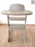 Twee kinderstoelen: eenvoudig uit elkaar te halen en gemakkelijk mee te nemen. De verhoogde rand zorgt dat er niets op de grond komt als er wordt geknoeid. De witte kinderstoel is met dienblad. De rod