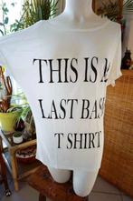 Message t-shirt met logo ‘this is my last basic t-shirt’ dat werd vervaardigd in 100% viscose. Maat: getekend als xs maar eerder maat m/l. Schouderbreedte: 45 cm. Afstand breedte tussen beide oksels: