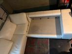 Witte l-vormige hoekzetel – met extra matras en 2 rugkussens (niet op foto) comfortabele en moderne witte hoekzetel. Op de foto ontbreken nog het matrasgedeelte (los bijgeleverd, geen slaapfunctie) en