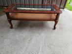 Oudere salontafel met glazen inleg. Mag weg wegens verhuis. Lengte 120 cm x breedte 60 cm x hoogte 46 cm. Mag weg voor een zeer kl