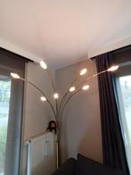 Lampadaire en bon état de fonctionnement. Composé de 8 lampes halogènes, avec bras en laiton. Pied en laiton. Plaque de base en ma