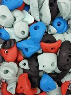 Lot de 50 prises d'escalade variées. Lot composé de prises bleues, rouges, turquoises et noires. Le lot est plutôt orienté pou