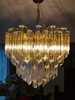 Kristallen hanglamp (verguld) voor eetkamer, de hangende elementen zijn gemaakt van venetiaans kristal. De lamp is kompleet met ex