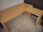 Mag weg wegens aanschaf zit/sta bureau. Heeft duidelijke gebruikssporen (zie foto 3), maar kan zeker nog dienen. Afmetingen grote tafel: 150 cm lang 65 cm breed 73 cm hoog de hoek extensie is inschuif