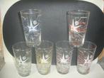 7 glazen van fryns jenever, hasseltse stokerij, hoogte 12,5 cm. € 3,00 voor allemaal samen. Afhalen of verzenden op kosten en