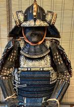 Armure de samourai de type bushi origine japon période edo unique le dou cuirasse est composé de 9 parties dont 5 plaques rare inclus homme de bois : support pour armure japonaise de samourai excellen