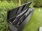 Tuinbox van vidaxl. Afmetingen 200 x 50 x 60 met binnenzak met rits. Aangekocht 10/08, gemonteerd en dan gezien dat het eigenlijk