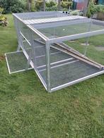 Volière voor duiven, maar kan ook voor andere dieren/vogels hoogte 72 cm lengte 2 m diepte 1,10 m 2 steunhoeken van 1,09 m x 1,09 2 houten balken om op te zitten inox niet zo oud, in goede staat, zelf