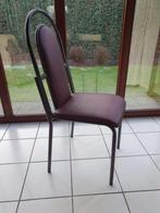 4 keukenstoelen in paars/zwart gemarmerde kleur 3 stuks in heel goede staat, 1 exemplaar is licht beschadigd en kan gratis meegenomen worden. Enkel afhaling de vermelde prijs is voor de 4 stoelen