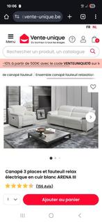Salon cuir véritable 3+1+1. Parfait état. Couleur crème. Le divan et un des fauteuil son électrique, position assise ou couché, vo