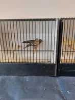 2 koppels onverwante geel mozaïek kanaries. Allen van 2025 mogen weg wegens einde soort. De 2 poppen zijn zusjes van elkaar. Zitte