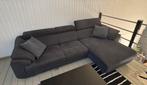 Hoekzetel van het merk henders & hazel. 2M80 breed, de chaise longue is 1m60. De hoofdsteunen kunnen op verschillende punten w