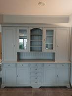 Dennenkast zelf in het grijs geschilderd, 2 delig, heel functioneel. Originele kleur was creme, hier en daar aan klinkjes enz.. Is er wat sleet van de verf. Ik moet kleiner gaan wonen daarom moet ze w