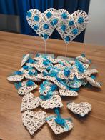 2 grote harten op statief kleine hartjes te hangen aan bv. Stoelen (+/-30) 2 grote harten voor bv. Stoelen echtpaar 2 huisjes, waarvan 1 voorzien van rooster. Hierin kunnen bv. Briefjes worden geplaat