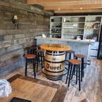 ☆statafels van eiken wijnvaten☆ met of zonder logo. Met blanke of zwarte banden ,de logo's worden erop geairbrusht met speciaa