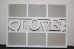 Permet de placer des petites photos souvenir. Cadre en plastique de couleur blanche. Dimensions : 45cm x 34cm. Prix : 7€. A e