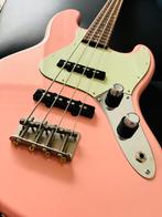 Handmade j-style bass medium scale: 32" pink color with matching headstock rosewood fretboard two j-style pickups 21 frets co