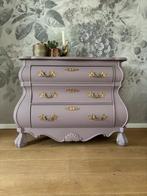 Schitterende grote robuuste ladekast model: buikkast gerestyled in een mooie lila kleur en voorzien van goudkleurige greepjes de afmetingen staan op de foto ophalen is in lieshout, bij eindhoven