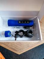 Het is een power bank, het heeft een licht, het kan oproepen opnemen en afleggen, en het kan muziek afspelen. Het komt ook met een houder voor op de fiets. (En een oplader)