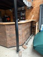 Ouderwetse toog die zeer stevig is. Komt met een 6-tal krukken erbij. Afmetingen 210cm x 240cm 110cm hoog ongeveer. Is al in 2 stukken gedaan om te vervoeren. Kan gebracht worden na afspraak.