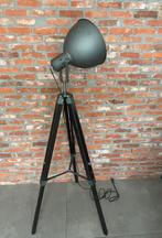 Geef je interieur een stoere industriële look met deze stijlvolle tripod vloerlamp. De lamp heeft een grote grijze metalen kap met een diameter van 30