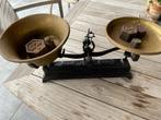 Antieke weegschaal met gewichten. Schalen in koper