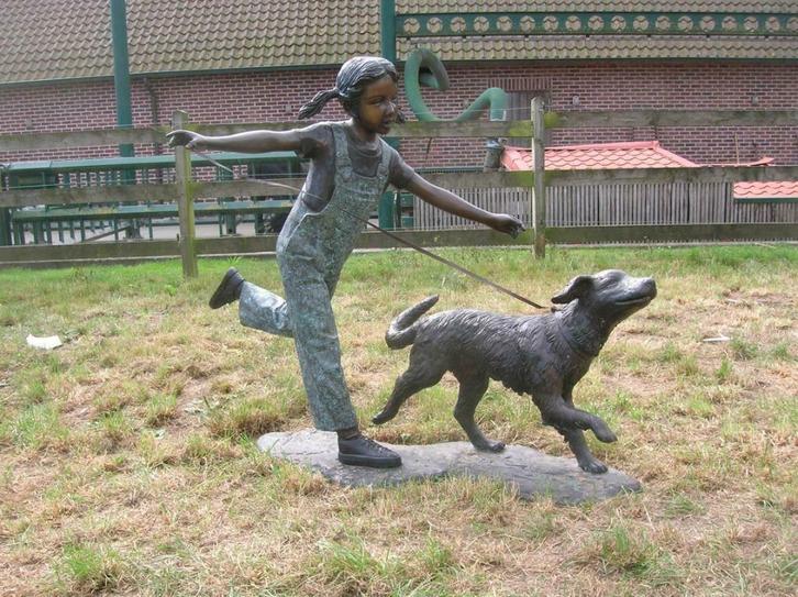 Bronzen beelden en tuindecoratie in ijzer en hout.