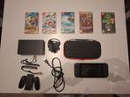 Nintendo switch (zwarte versie) in perfecte staat naadt kleine krasjes op het scherm (bijna niets van zichtbaar tijdens spelen. Alle accesoires die bij een switch zitten. Spellen en hoesje = verkocht